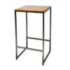 Bar alto estilo industrial, con estructura tubular y cubierta de madera